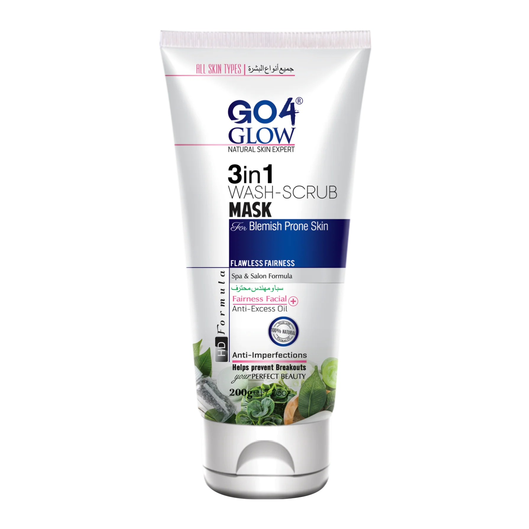 Experience the ultimate skincare solution with Go4Glow 3in1 — a professional-grade formula that cleanses, exfoliates, and purifies your skin in one easy step. This powerful 3-in-1 treatment works as a face wash, scrub, and mask, effectively removing dirt, excess oil, and dead skin cells to reveal a fresh, bright, and glowing complexion.