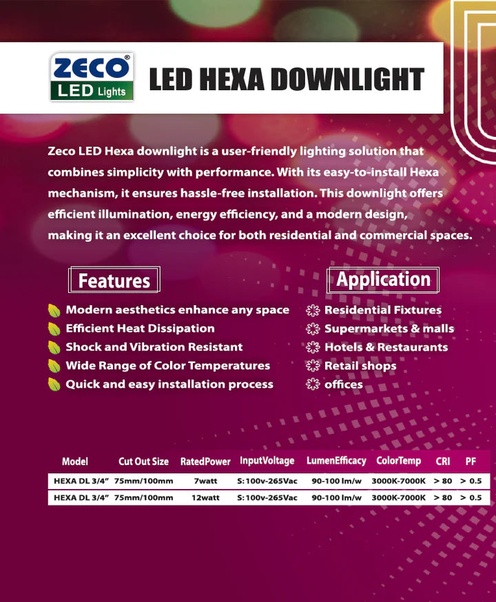 12W LED Hexa Downlight designed for 3/4″ ceiling cutouts.